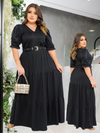 O Vestido Longo Verde com Cinto Rario10 foi criado para valorizar cada detalhe do corpo feminino com conforto e sofisticação. O modelo traz mangas bufantes modernas, decote em V que alonga a silhueta e saia em camadas que garante movimento e delicadeza ao look.