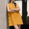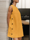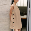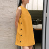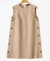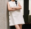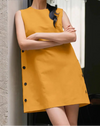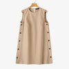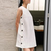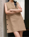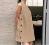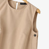 Seu corte sem mangas valoriza os ombros e proporciona frescor nos dias mais quentes, enquanto os botões laterais adicionam um toque de charme e exclusividade.